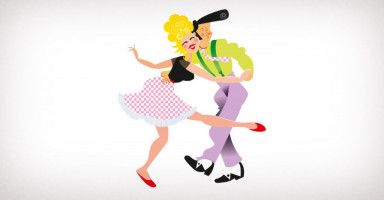 Sur deux saisons, deux couples pour deux époques. Création originale Monsieur Agency.Servant d'illustrations pour une guingette.